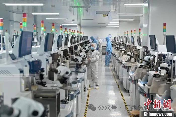 位于贺州生态产业园的天微电子半导体项目集成电路生产线,工作人员正在作业。俞靖 摄